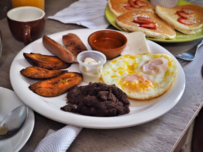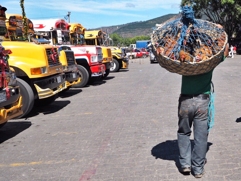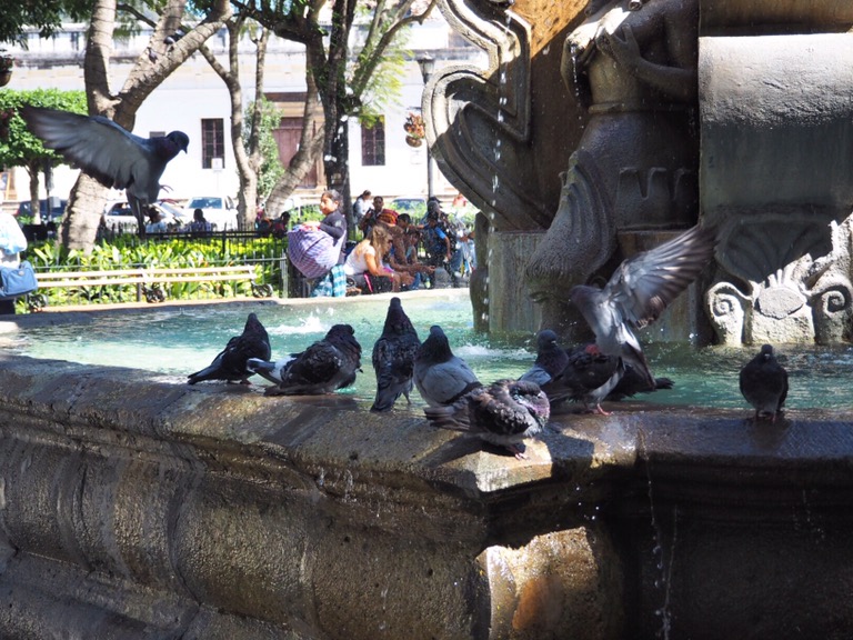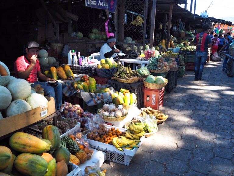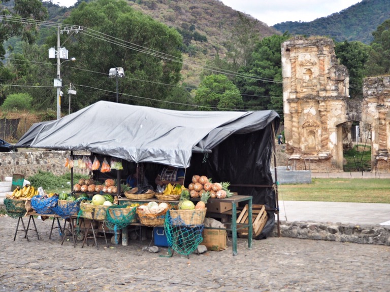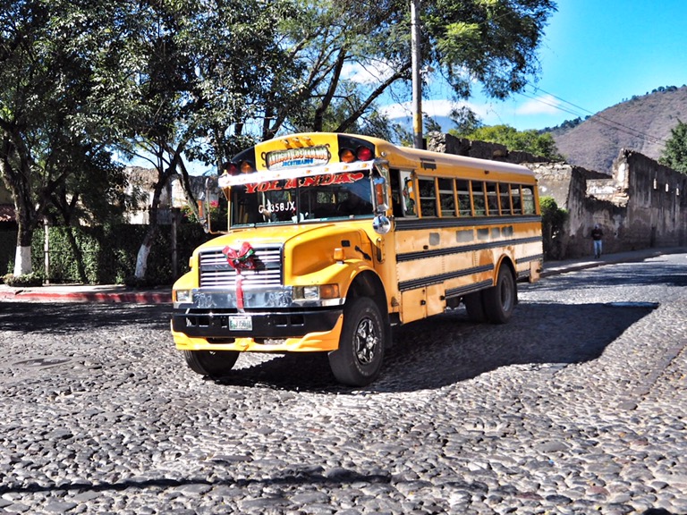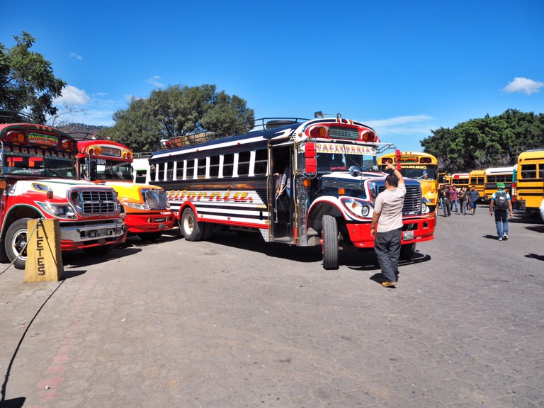 Aber: Wir sind da! Endlich! Umzingelt von Vulkanen haben wir uns erstmal in der bezaubernden Kolonialstadt Antigua niedergelassen. Hier wohnen wir bei einer ebenso bezaubernden Salsa-Lehrerin und ihrem Norwegischen Freund. Das lokale Bier heißt hier übersetzt Chicken, einige Kneipen ebenso und auch die Busse heißen Chicken(-bus). Transportieren diese neben Personen selbstverständlich auch – wo eben noch Plätzchen zu finden ist. Mein Spanisch ist schon nach 24h ziemlich beeindruckend, wie ich finde (finde aber auch nur ich so) und auch sonst ist man hier neben alten Gemäuern, bunten Fassaden und leckeren Früchten in ganz guter Gesellschaft. Muy fantastico!