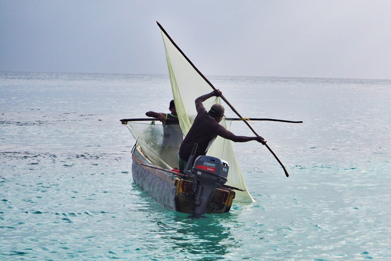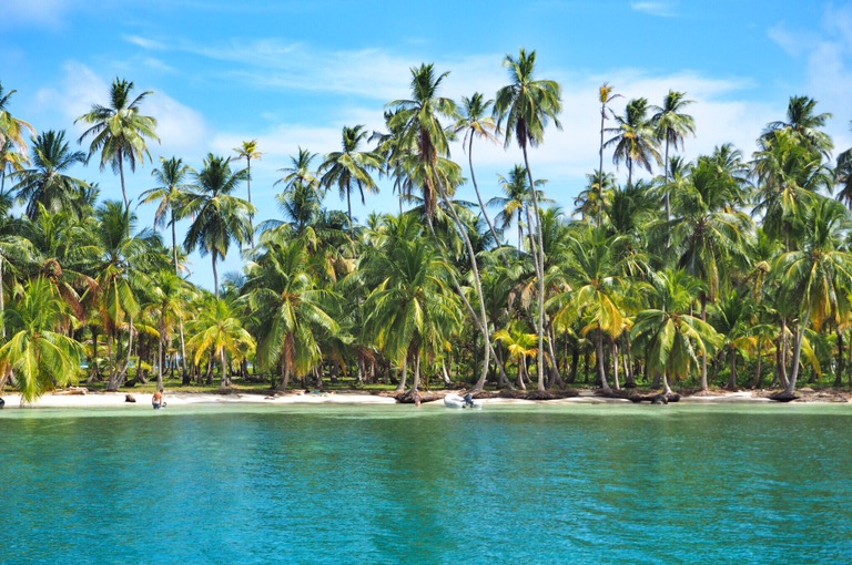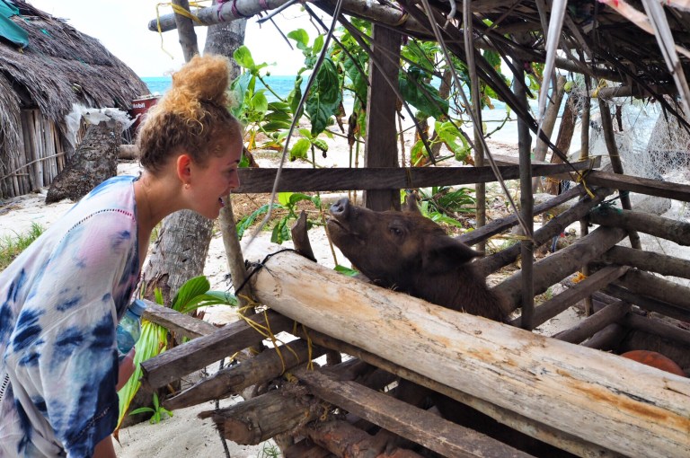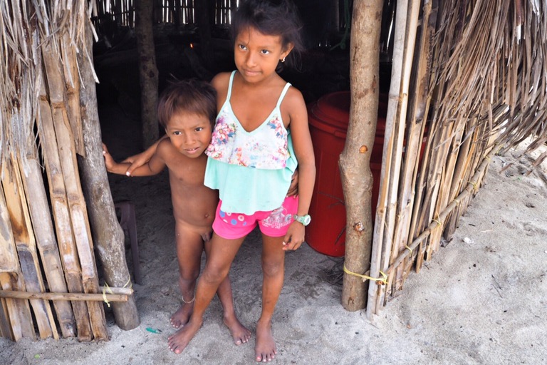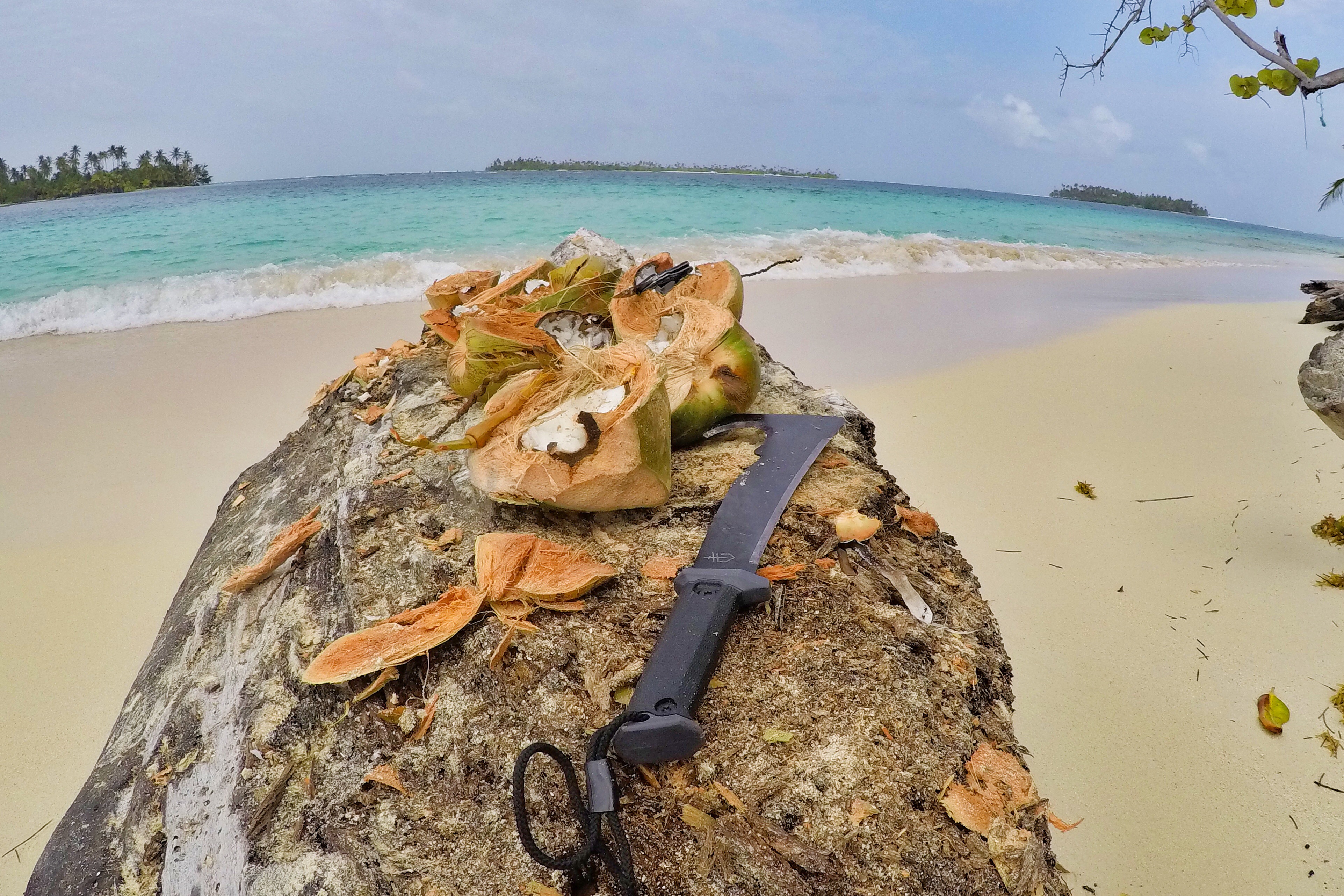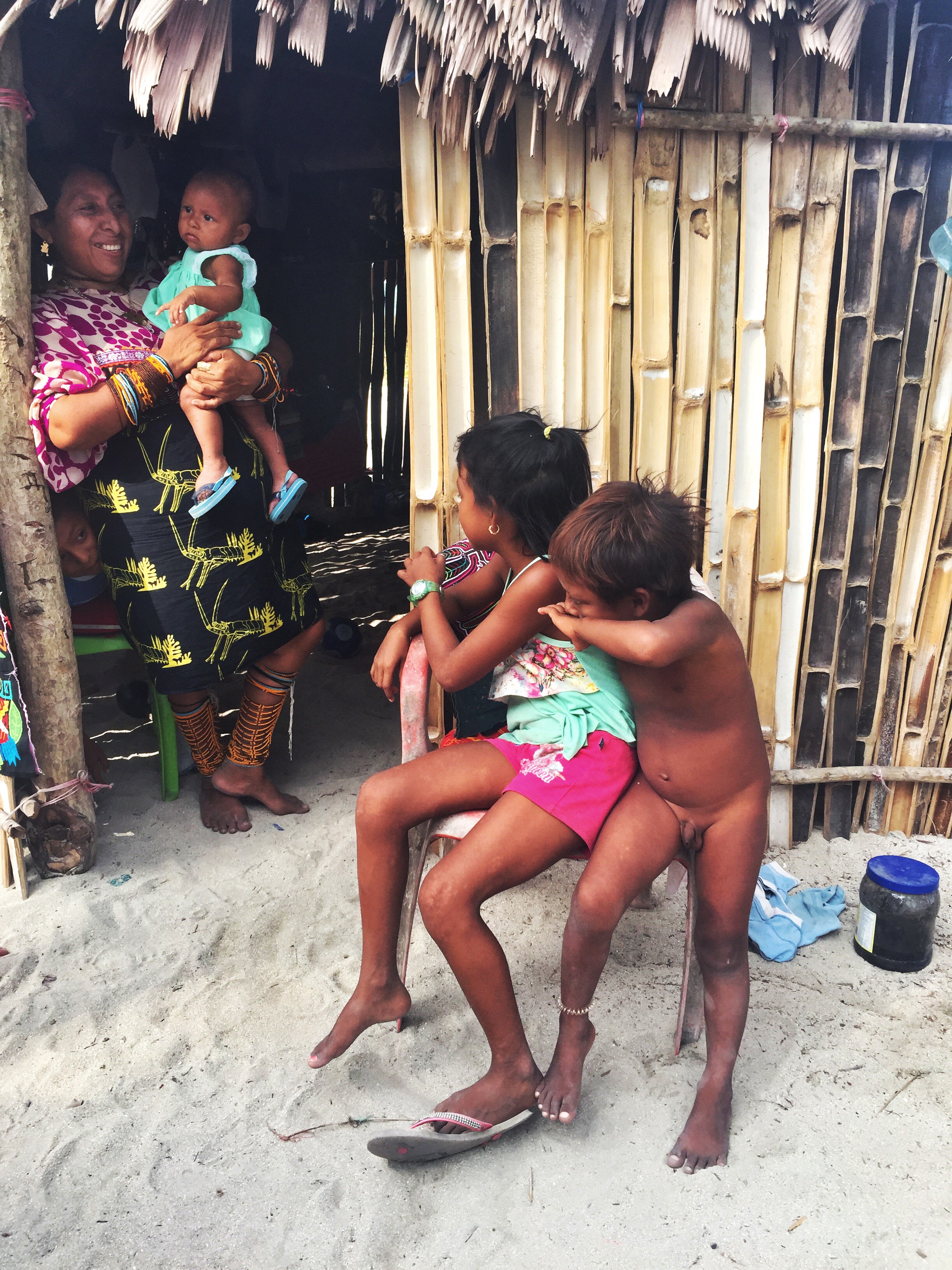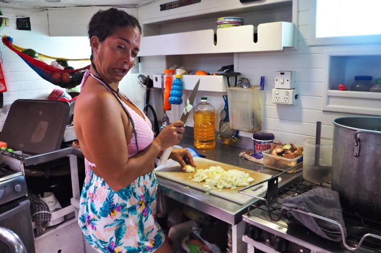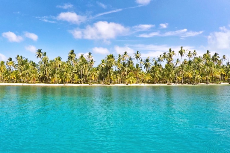 Unsere Ablegestelle Portobello ist ein kleines Hafendorf, in dessen Bucht jede Menge Bootsleichen im Wasser treiben. Teilweise sieht man nur noch bemitleidenswert den Mast und ein zerfetztes Segel aus dem Wasser ragen. Als wir am Dock auf unser Boot gewartet haben, sind wir durch Zufall in eine kleine BBQ-Party von ein paar Einheimischen gestolpert. Hier wurden wir mit reichlich Bier und Hähnchenschenkel gefüttert und spontan zum Salsa-Tanz aufgefordert. Pünktlich zum Sonnenuntergang haben wir abgelegt. Von Portobello war es eine Nacht Fahrt auf offener See zu den San Blas Inseln: 374 kleine Inseln, manche nur so groß wie meine Küche – bewohnt von einer Kokospalme. Die Inselgruppe ist eine autonome Region von Panama – besiedelt von einem indigenen Volk, den Kunas. Diese dürfen das Gebiet unabhängig vom Staat Panama verwalten. Hier gelten ihre Gesetze und Auflagen. Das hält glücklicherweise die Tennissockenträger mit Rollkoffer fern, sodass Tourismus in seiner abstoßenden Form hier nicht existieren kann. Will man die Inseln als Reisender besuchen, braucht man die Genehmigung der Kunas und muss eine entsprechende Tax zahlen. Will man auf einer der Inseln übernachten, bieten die Kunas einen Schlafplatz in einem ihrer aus Palmen gebauten Hütten an. Hotels oder andere Gebäude gibt es nicht.