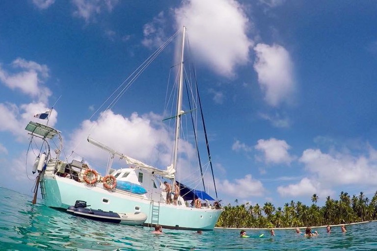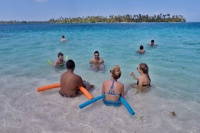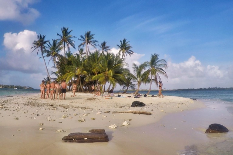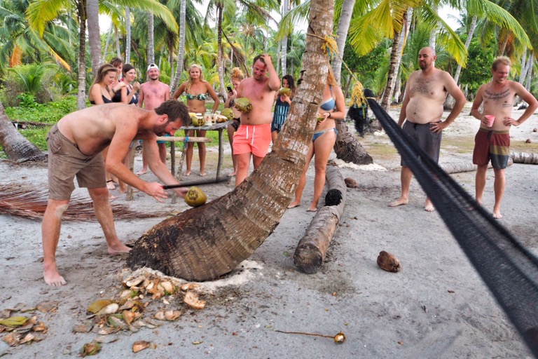 Mit dem Setzen des Ankers unsanft geweckt, hatte das katapultartige Hin- und Herschleudern meiner Selbst ein Ende. Wir sind auf den San Blas Inseln angekommen! Den ersten Tag haben wir auf einer Fototapeten-Insel mit Volleyball spielen, Beachen, Schnorcheln und Coco-Locos verbracht. Auf dieser Insel lebten auch zwei Kuna-Familien – ein Großteil intersexuell, vermutlich durch Inzest. Man kann bei den Kunas (Fake-)Bier oder auch (Fake-)Gras kaufen, kann sich dabei aber auch sicher sein (Fake-)Money zurückzubekommen. Den Kunas würde ich noch nicht mal meine Zahnbürste anvertrauen. Das sind ausgefuchste Geschäftsleute. Nach mindestens 2min wäre sie an die nächste herumlaufende Eidechse verkauft worden. Später haben wir dann nach einem ausgiebigen BBQ auf unserem Boot mit launigen Spielchen noch in die Nacht hineingelacht. Der Höhepunkt des Tages war aber, als wir realisierten, dass wir drei von unseren Leuten auf der Insel vergessen haben. Bei der Erkenntnis blieb es. Wir haben sie erst am nächsten Tag abgeholt. Herrlich!