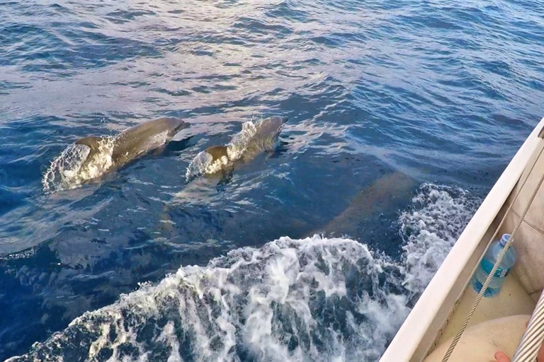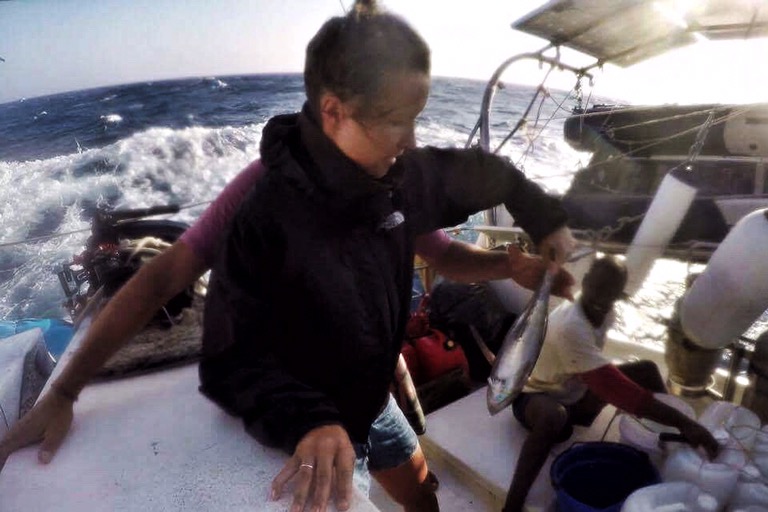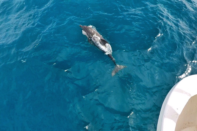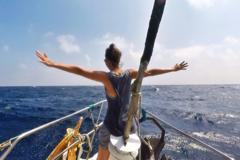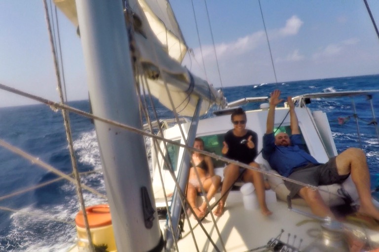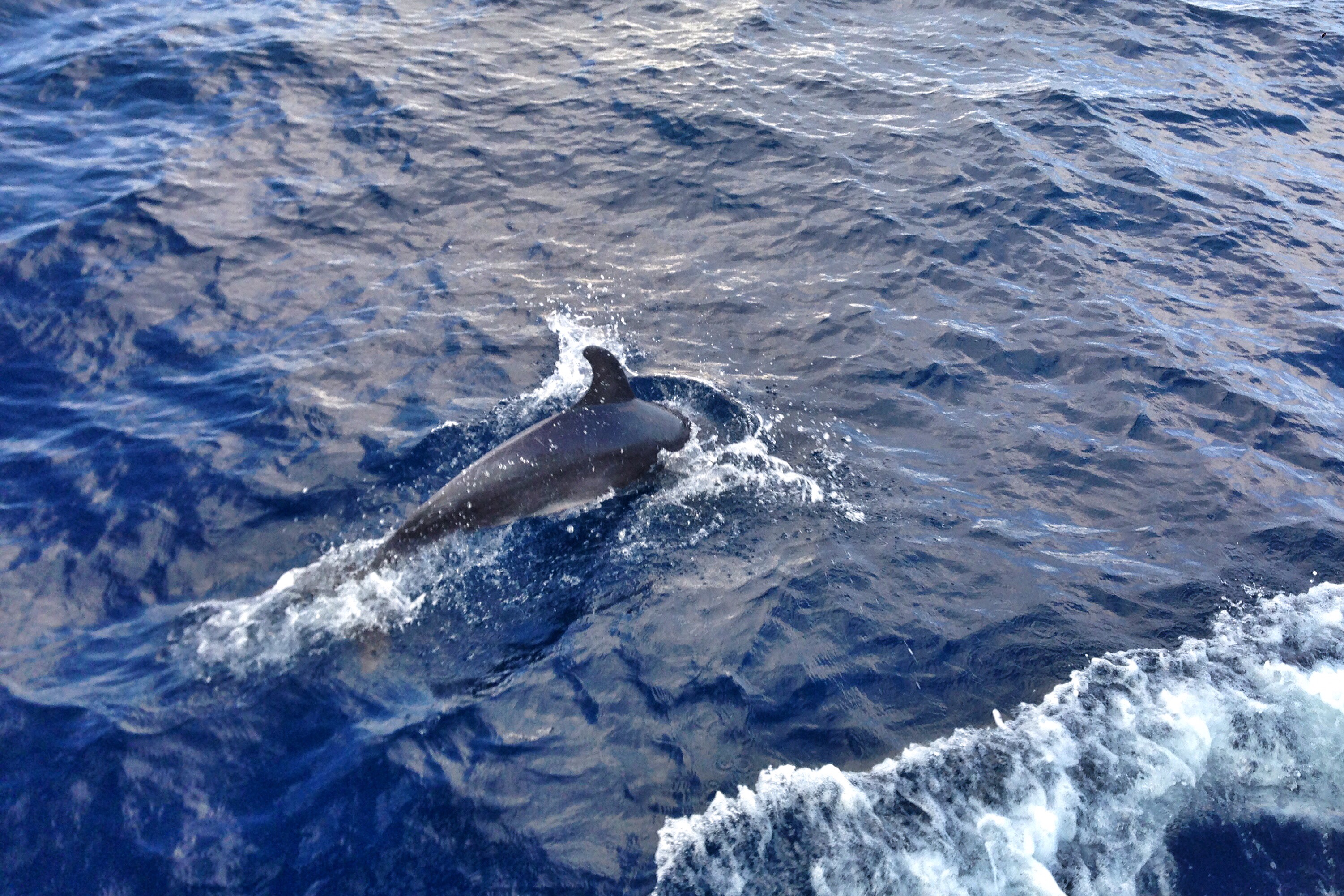 Nach einer halbwegs akzeptablen Nacht mit halbwegs akzeptablen Seegang folgte ein langer Tag des Nichtstuns – hier ein Delphin, da eine Welle. Bis zum Abend befanden sich alle in einer Salzwasserblase aus Schläfrigkeit und Anspannung. So lange ungeübt auf offener See zu sein, fordert dem Körper einiges ab.