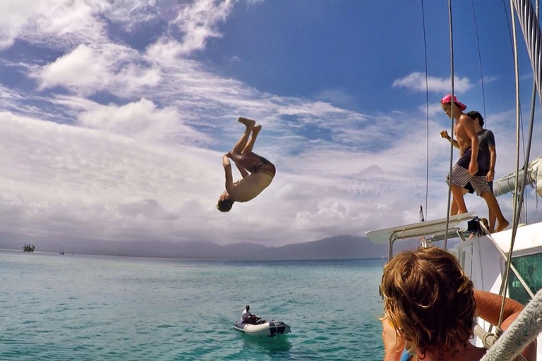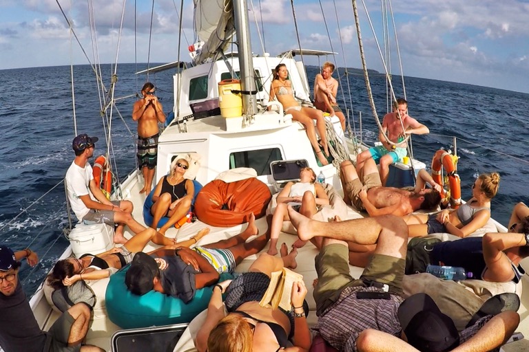 Fünf Tage auf einem kleinen Segelboot mit 21 völlig unbekannten Menschen zu sein, kann mit der falschen Zusammensetzung und den falschen Gewürzen wie faulige, dahingeraffte Eier schmecken. Ich hatte wirkliches Glück – sowohl mit meinen Mitreisenden als auch mit der Crew. Keine geschmackslose, aufgehitze Backpacker-Suppe, sondern ganz normale, unaufgesetzte Traveller, die alles auf sich zu kommen lassen. Kein an den Haaren reißen, keine Giftpfeile in den Rücken des anderen. Nur jede Menge Fun & Sun zusammen! Nathalie, Keanen, Erie und Charly formten dabei die beste Crew, die man sich hätte wünschen können.